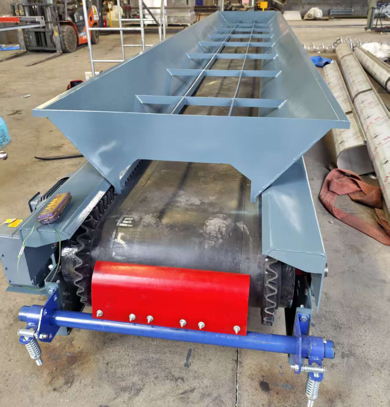 皮带机是带式输送机的简称,有固定式和移动式,结构简单,效率高。以挠性输送带作物料承载和牵引构件的连续输送机械.条无端的输送带环绕驱动滚筒和改向滚筒。两滚筒之间的上下分支各以若干托辊支承。物料置于上分支上,利用驱动滚筒与带之间的摩擦力曳引输洪带和物料运行。适用于水平和倾斜方向输送散粒物料和成件物品,也可用于进行一定工艺操作的流水作业线.结构简单,工作平稳可靠,对物料适应性强,输送能力较大,功耗小,应用广泛。